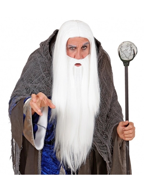 Perruque de magicien avec barbe blanche. Perruque avec longs cheveux blancs et lisses avec barbe également longue. Parfait pour incarnez Merlin.