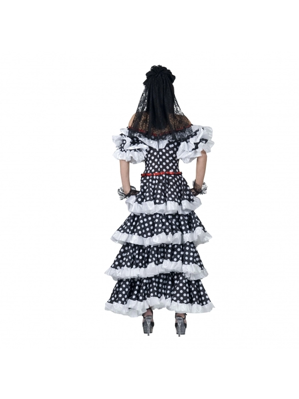Superbe robe de flamenco femme bleu marine à pois blancs.