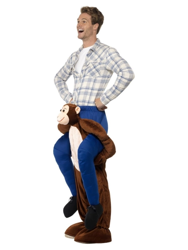 Le singe garde les mains dans le dos, pour donner l’illusion qu’il vous porte sur le dos. De fausses jambes viennent d’ailleurs sortir de part et d’autre des bras du singe. Le haut de cette combinaison se compose d’une chemise et d’un t-shirt.