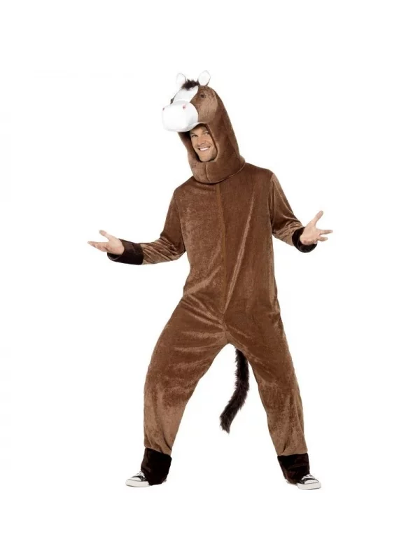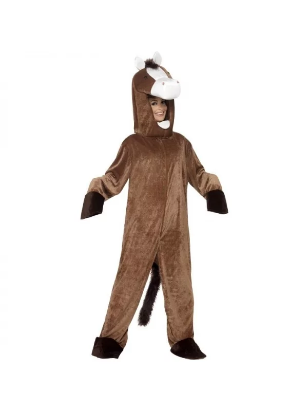 Il est question de ce costume cheval adulte mixte marron (combinaison intégrale). Il est conçu avec de fausse fourrure et munie d’une longue queue construite ainsi que d’une coiffe amovible et assortie.