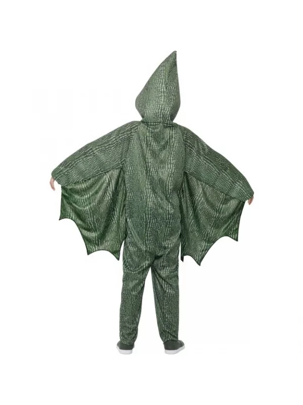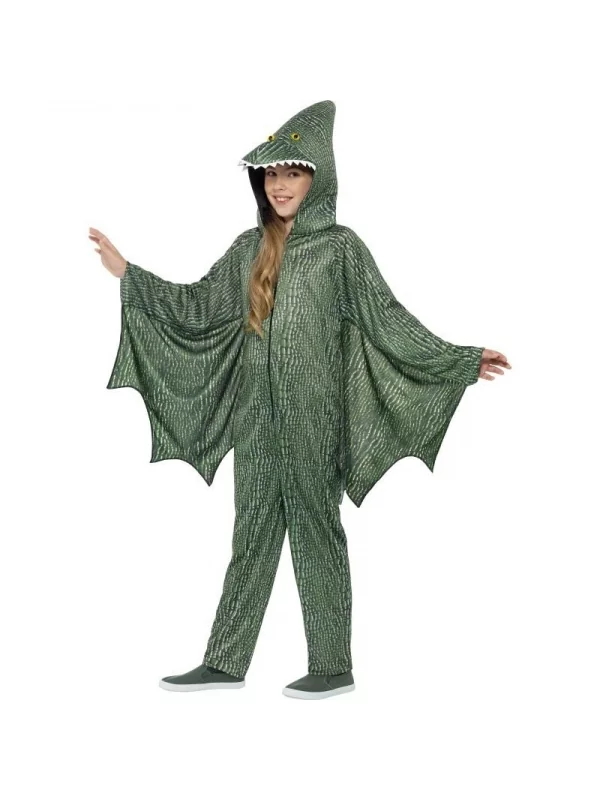 Ce déguisement de dinosaure est une combinaison complète. D’une seule pièce, ce costume est très facile à enfiler. Le tissu donne un aspect de peau d’écailles, un peu comme un reptile… Les grandes ailes aux bords pointus s’étendront lorsque votre enfant élèvera ses bras. La capuche représente la tête du dinosaure, avec ses deux yeux perçants jaunes et ses petits crocs blancs en triangle prêts à croquer tous ceux qui viennent l’embêter…