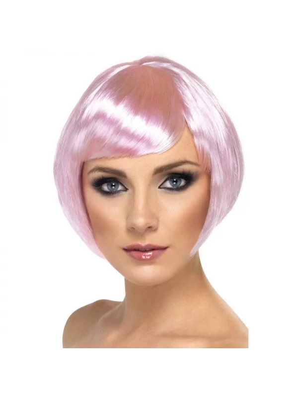 Perruque carrée frange rose pastel