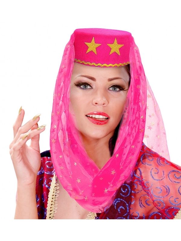 Coiffe orientale femme avec voile, rose, noir ou rouge