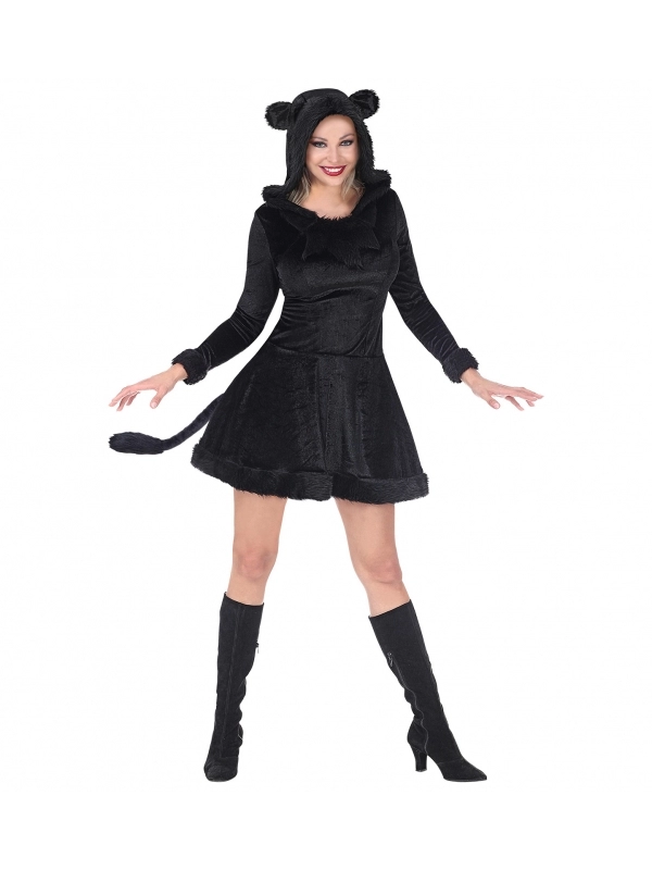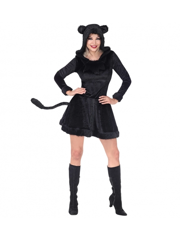 Voilà une robe bien originale et on ne peut plus sexy ! Un panthère noire en robe patineuse avec que longue queue et une capuche avec une paire d’oreilles !