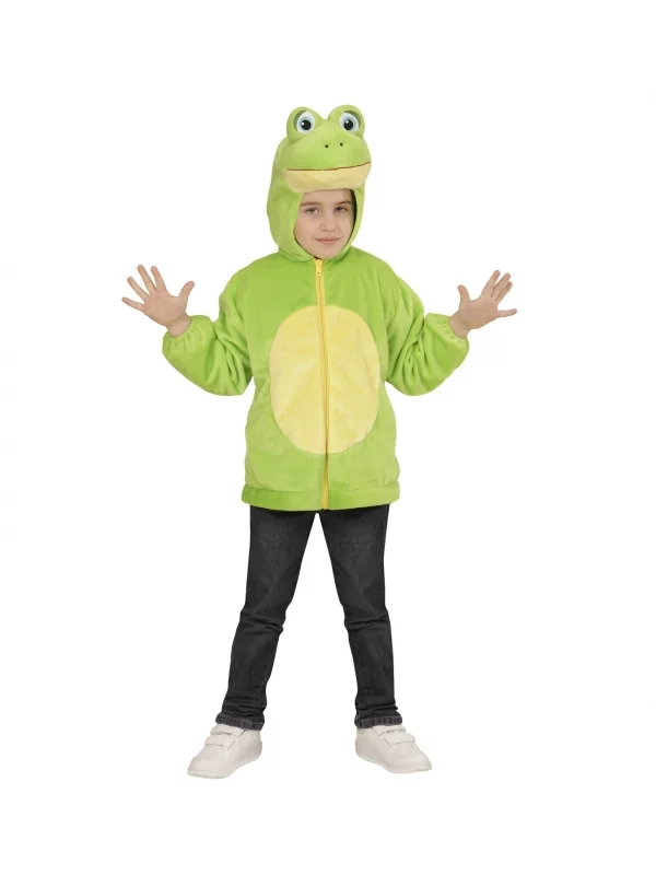 Déguisement Veste peluche à capuche avec tête de grenouille verte