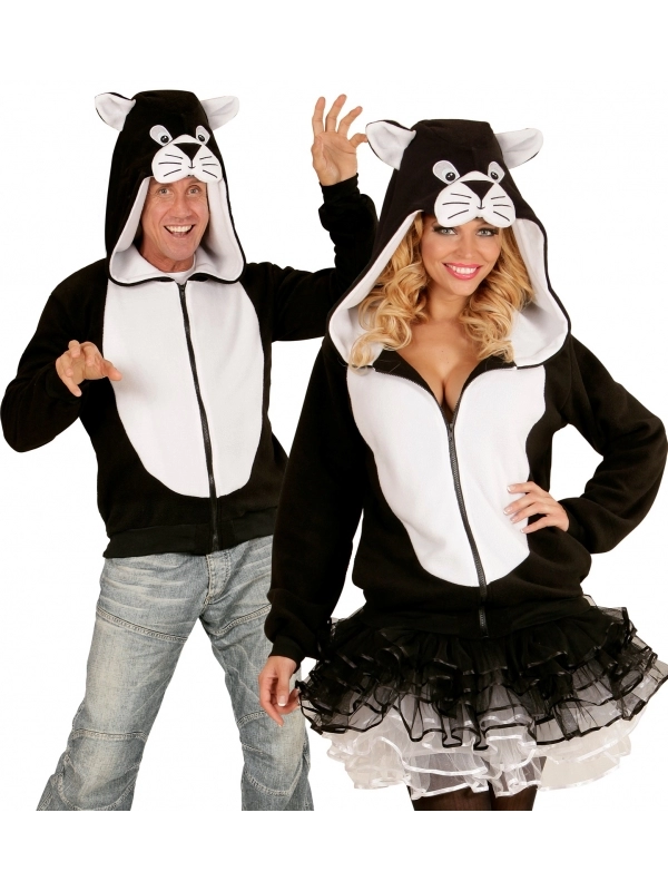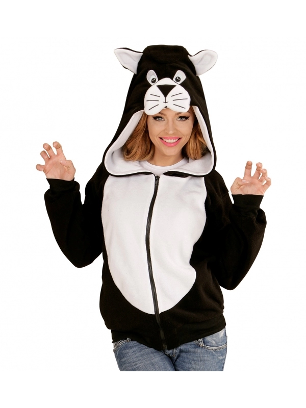 Couleur : Noir avec buste blanc Capuche en forme de tête de chat en peluche avec oreilles, yeux et museau