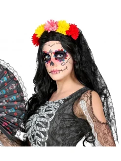Coiffez-vous Ă la mode mexicaine avec ce Voile avec fleurs jour des morts femme !